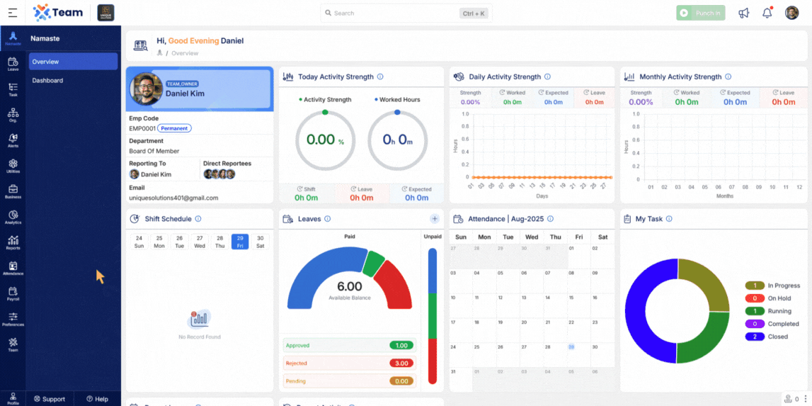 We’ve introduced a new Productivity Summary Widget on the dashboard to provide a quick overview of daily work efficiency. It includes insights based on tracker data such as working hours, task engagement, and activity patterns, helping users stay aligned with daily goals.