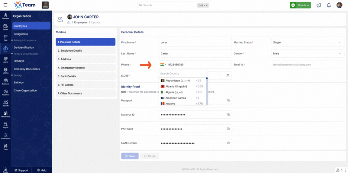 A country code dropdown is now available in phone number fields, improving global support and ensuring more accurate data entry.